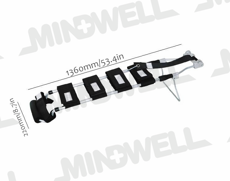 1) Aluminum frame and length is adjustable, nylon leg straps automatic traction mechanism;
