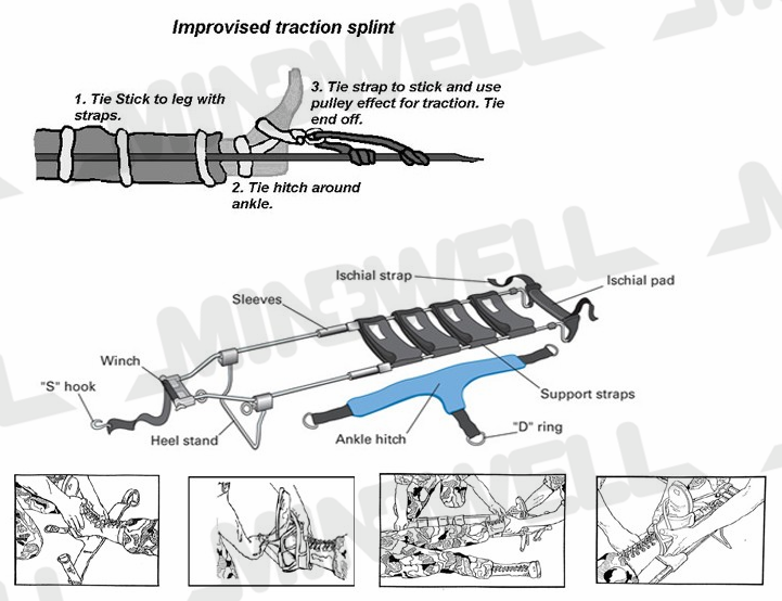 2) Relieve the tissue pressure on fractured leg by means of traction applied thus avoids further hemorrhage, shock and secondary nervous, vascular, bone and muscular damages;